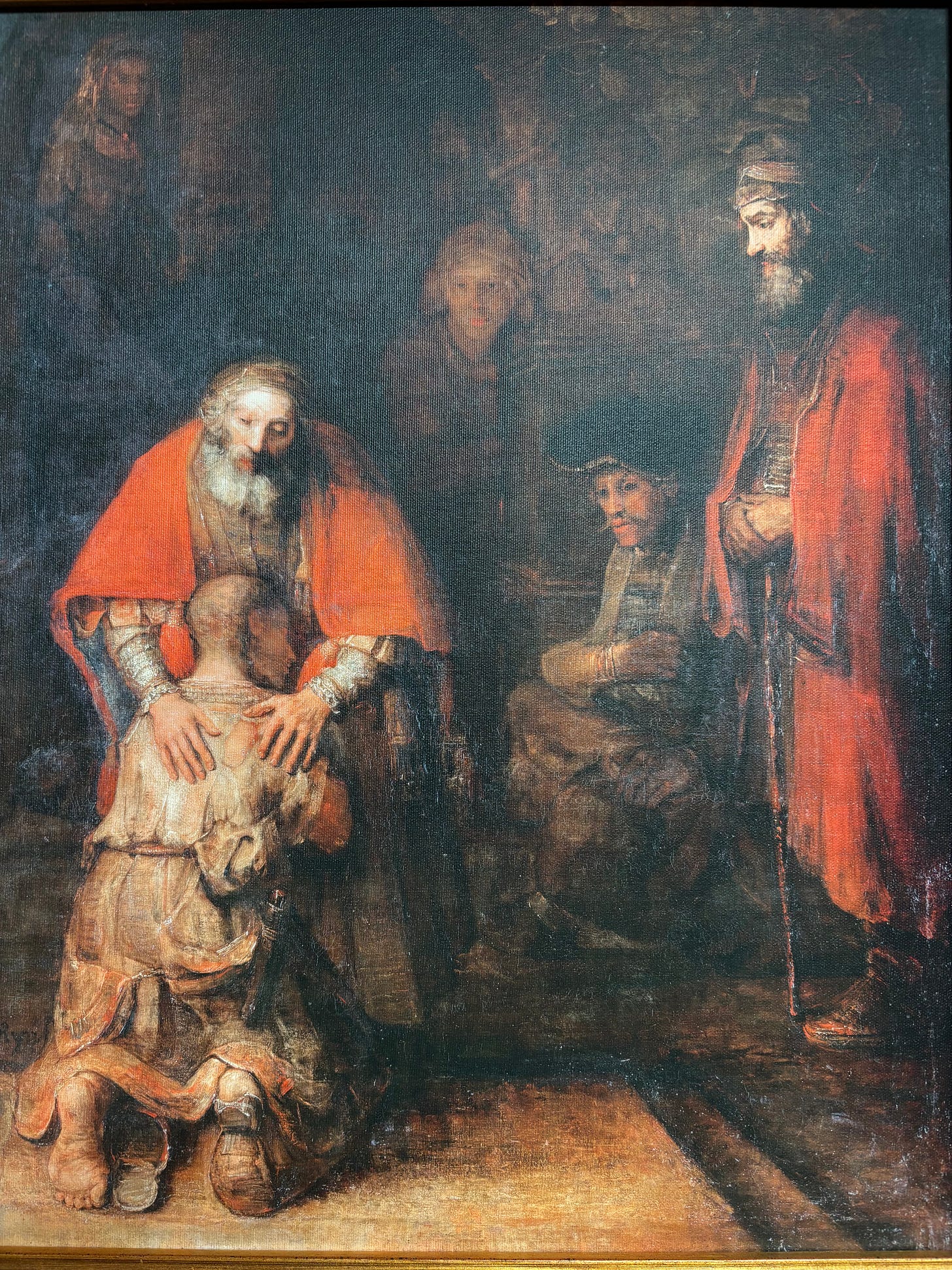 It was a painting called The Return of the Prodigal Son by an artist named Rembrandt. I first encountered the painting years ago through a book written by Henri Nouwen, titled The Return of the Prodigal Son: A Story of Homecoming. And the book wrecked me. My pen was the only thing slowing me down as I scribbled notes and underlined line after line (my sincerest apologies to those of you who find writing in books sacrilegious). There were parts that brought me to tears. Parts I prayed I would internalize and remember forever. And now, with a copy of the painting in our house, I decided to re-read the book. Not only to freshen up on the depths explored within the painting, but to do a personal check-in, too, to see my notes and my underlined paragraphs from a woman two births and a miscarriage ago. See where she was, where I am now.